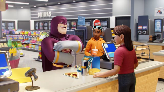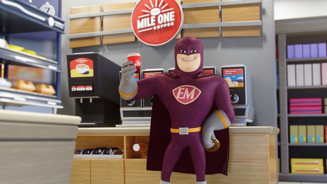 The process of reimagining ExtraMan was an enjoyable journey of character exploration. Our partners at Drake Cooper asked for an "Evolution not a Revolution" of ExtraMile’s mascot’s previous design. Our biggest goal was to make ExtraMan's intentions clear; he's here to help the customer treat themselves to all the goodies ExtraMile has to offer. So come on in and meet ExtraMan!